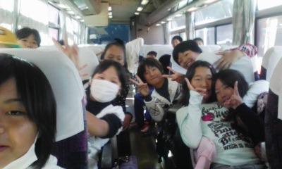 宇治平等院の見学を終えて、大津港に向かうバスの中(^_^)v