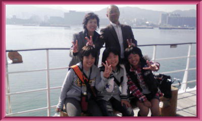 船上で先生とスナップ写真!