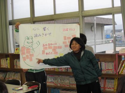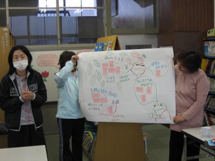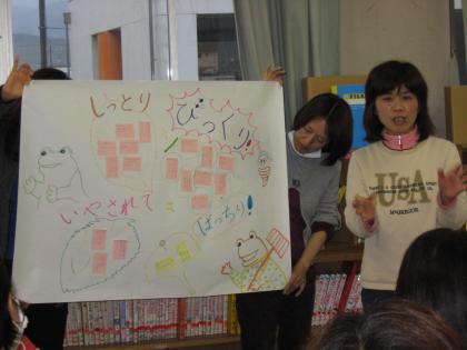 「よかったなあ」と思う所などを付箋に書いて、グループ全体で授業の振り返りをしました。「しっとり・バッチリ・うっとり・いやされて!!」そんな授業でした。