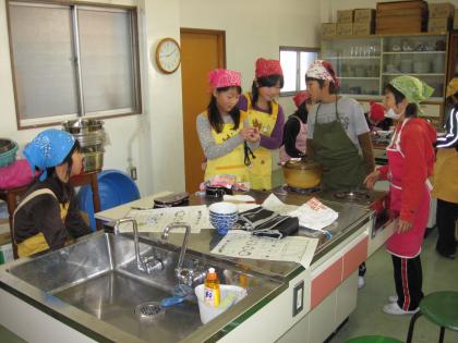 プリントで「ごはんの炊き方」の確認をしてから、いよいよ実習です。