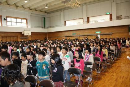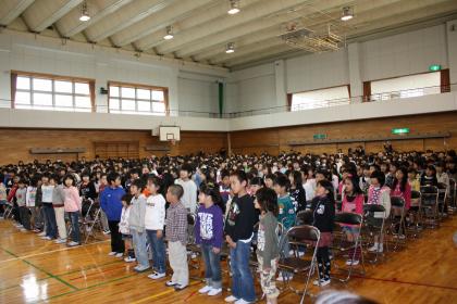 在校生を代表して、2年生の児童が、お迎えの言葉を言ったり、歌を歌ったりしました。歌の時に、リズムをとっている1年生もいましたよ(*^_^*)