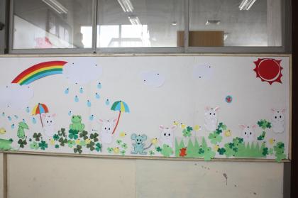 画用紙をいろいろな型に切って、綺麗に掲示してくれました。