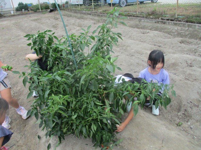 さつまいも堀りの後は、これまで毎日水やりをして育ててきたピーマンの収穫もしました。