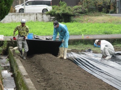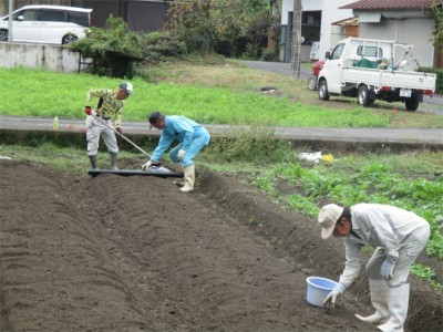 今日は3人の畑ボランティアさんが冬野菜を植えるための畝をつくりに来てくださいました。