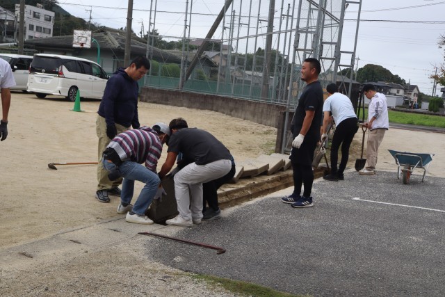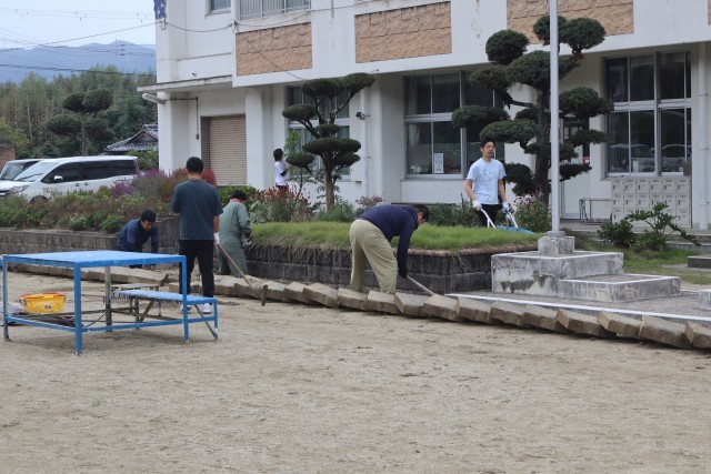 朝早くからたくさんの方々にお集まりいただき、運動場側溝の土あげや、