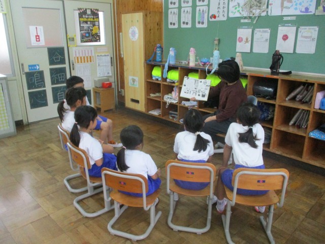 朝の学習の時間に、図書ボランティアさんによる読み聞かせ会がありました。