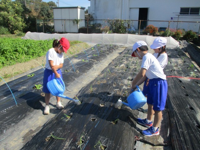 植えた後は、みんなで水やりをしました。これから大切に育てていきたいと思います。