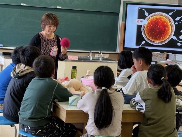 助産師さんに来ていただいて、子どもは、どうやってできるかを教えていただきました。
