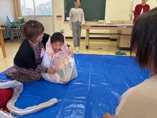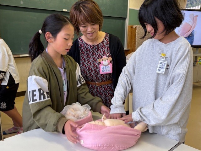 子どもが誕生するのにはどれくらいの大変さがあるのかを、実際に模型や人形を使いながら授業をしていただきました。