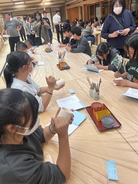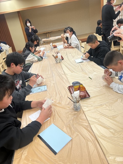 絵つけ体験では、下書きをもとにオリジナルの湯呑みを作成しました。仕上がりが楽しみです。