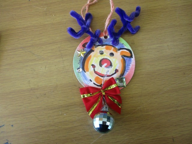 12月19日(金)学校の近くにアトリエがある西岡正琢さんに来ていただき、5・6年生を対象にした絵画教室を開いていただきました。図工室の黒板いっぱいにクリスマスの絵を描いて迎えてもらった子どもたちは、つくる前からドキドキわくわく。それぞれがイメージしたトナカイの絵を描き、モールやリボン、シールを使って世界に一つしかない飾りを仕上げることができました。みんな「作り方をやさしく教えてもらってうれしかった。」「家のツリーに飾りたい。」と大満足の様子でした。西岡先生、本当にありがとうございました。