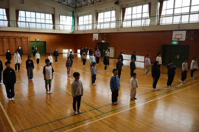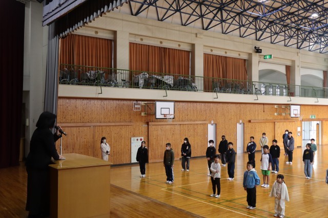 集会に集まった子どもたちは、体育館に入場してから全員が揃うまで、誰一人とおしゃべりをせずに静かに待つことができました。