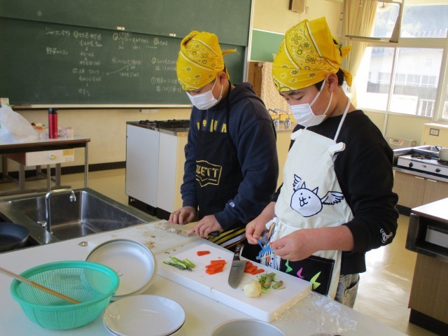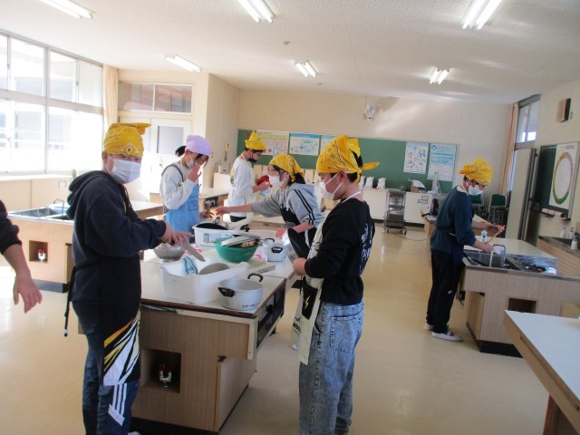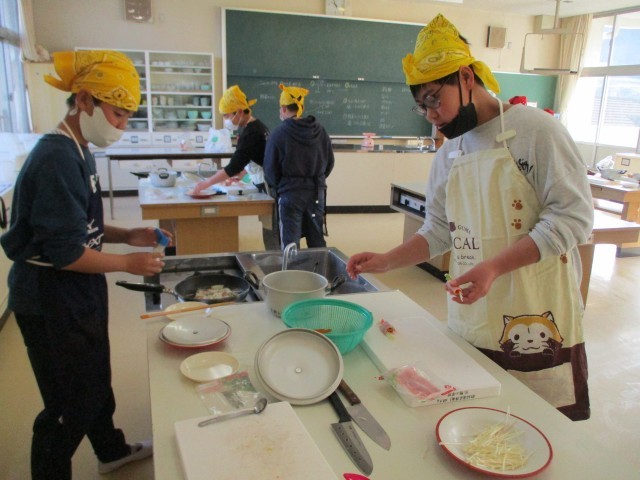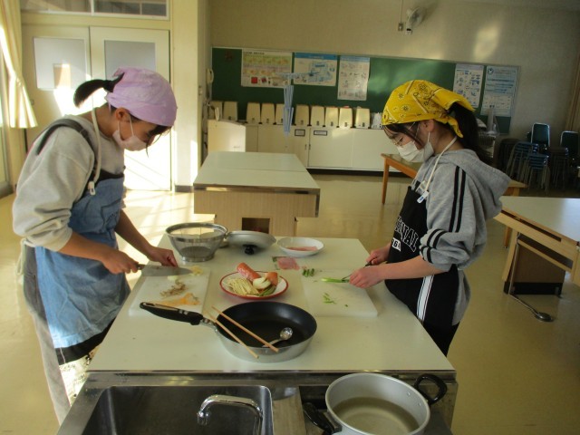 調理を行いました。ゆでる・炒めるの調理方法で2品作りました。