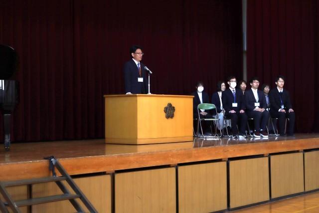 1時間目に、新しく来られた先生たちを迎える新任式と1学期の始業式をおこないました。