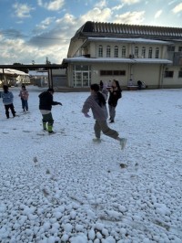 【1月10日】今日は、運動場は雪で真っ白です。子どもたちは、朝から喜んで雪遊びで...