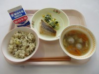 本日の献立は,あきのたきこみごはん,メルルーサのもみじやき,わふうサラダ,おつ...