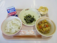 本日の献立は,ごはん,にくじゃが,じゃこのごまずあえ,なしゼリー(またはソーダ...