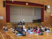 1年生の「歩行者安全教室」です。橋本警察署のおまわりさん、交通指導員さん、橋本市...