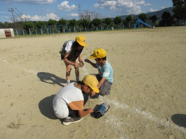 前期の活動を振り返った後、運動場の草抜きをしました。