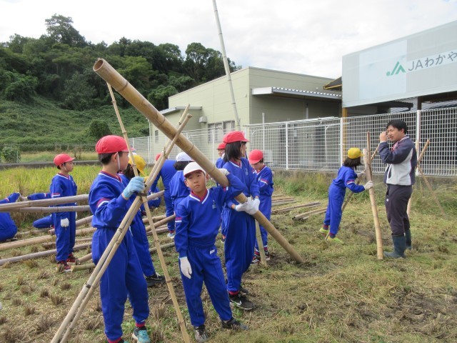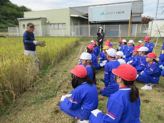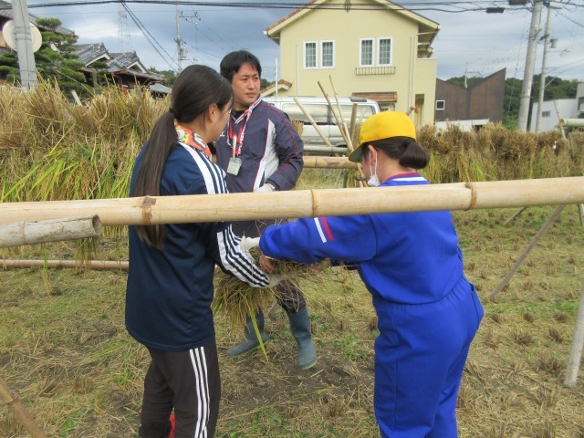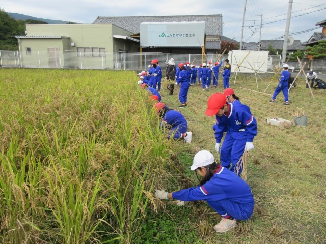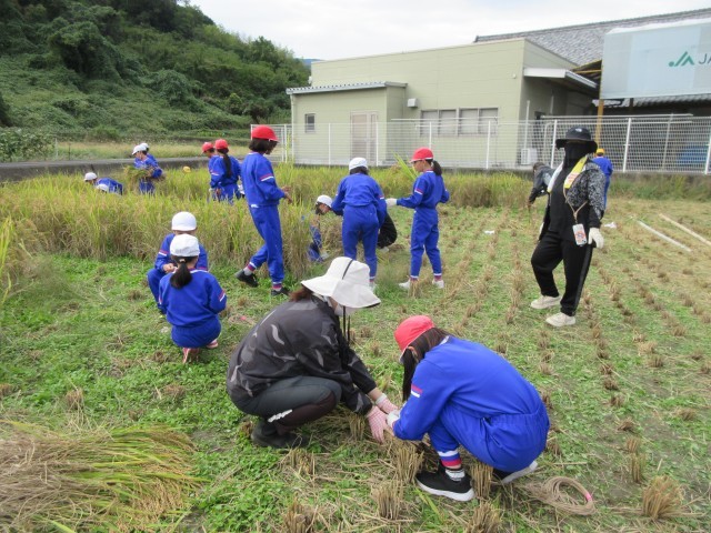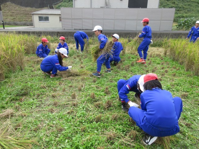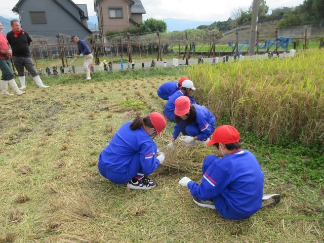 学校アドバイザーさんに教わりながら,稲刈りをしました。
