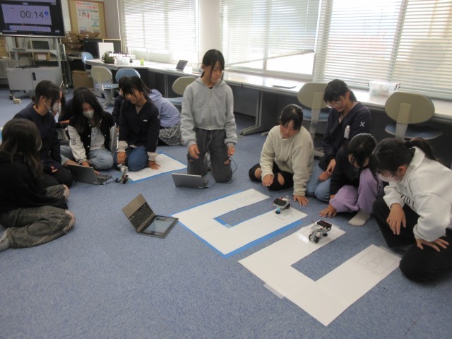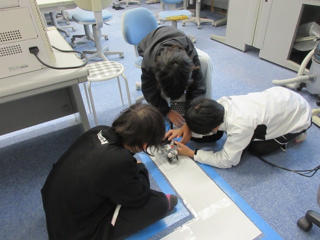 車がコース上をはみ出さずに走行できるようなプログラムを作りました。