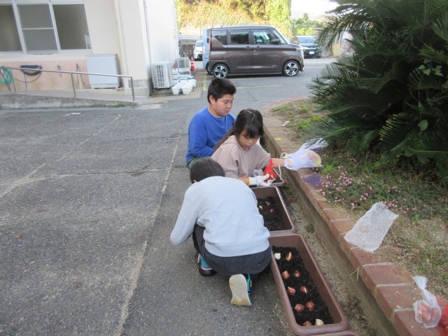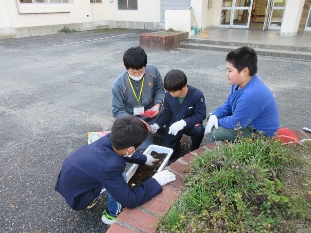 先月の活動を振り返った後,チューリップの球根を植えました。