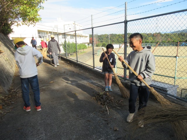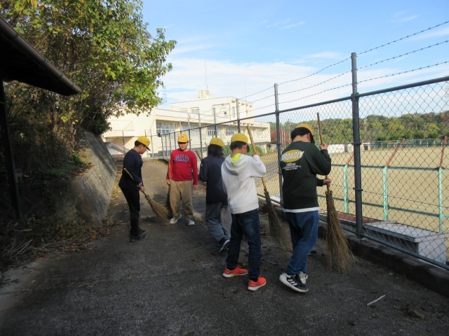 先月の活動を振り返った後,マラソンコースの清掃をしました。