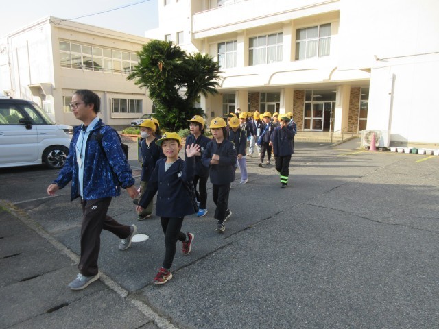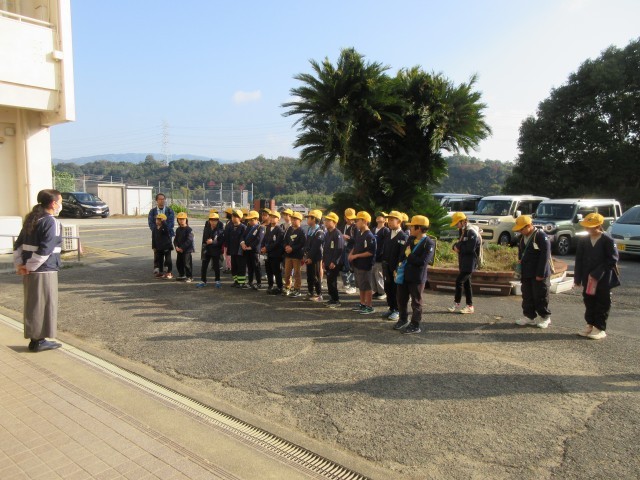 紀北工業高校の見学に向けて元気に出発しました。