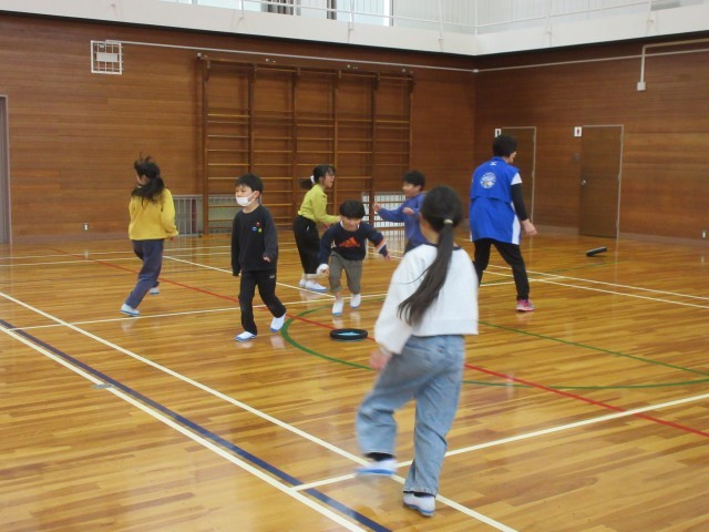 みんなでドッジビーをしました。