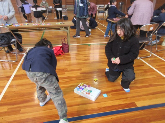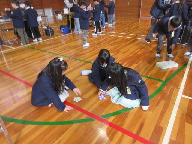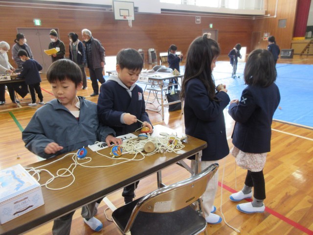 地域の方々から昔の遊びを教わり、実際に体験しました。