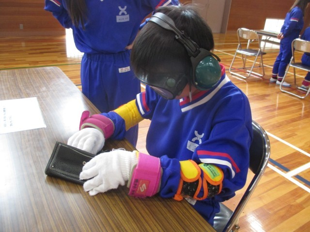 動きにくかったり、見えにくかったり・・・不自由さを感じたうえで、生活の中で、困っている人がいたら、どのように対応すればよいかを考えました。