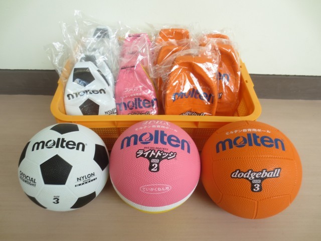 ご家庭からご寄付いただきましたベルマークを活用し、ゴムサッカーボール5球,ライトドッジボール4球(ピンク),ゴムドッジボール6球(オレンジ)と交換いたしました。今後ともご協力のほどよろしくお願いいたします。