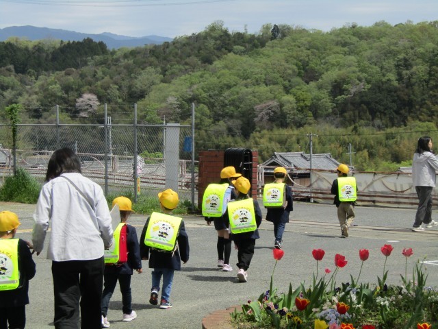 今日は晴天のもと、子どもたちは先生の話をよく聞き、安全に気をつけながら歩く姿が見られました。