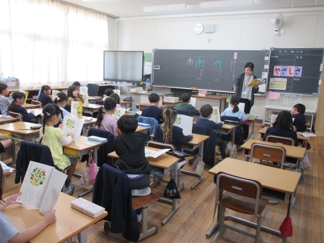 2年生国語の授業です。元気な声で音読の練習をしていました。