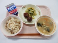 本日の献立は,ごはん,あじのなんばんづけ,わかめサラダ,はるさめスープ,牛乳で...