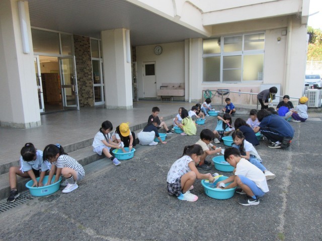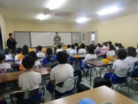 本校の児童が校区内の高校生といっしょに朝の挨拶運動をしました。