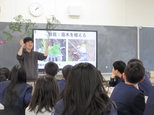 林業や森林のことについて学習しました。和歌山県の森林率は約77%で全国6位と聞い...