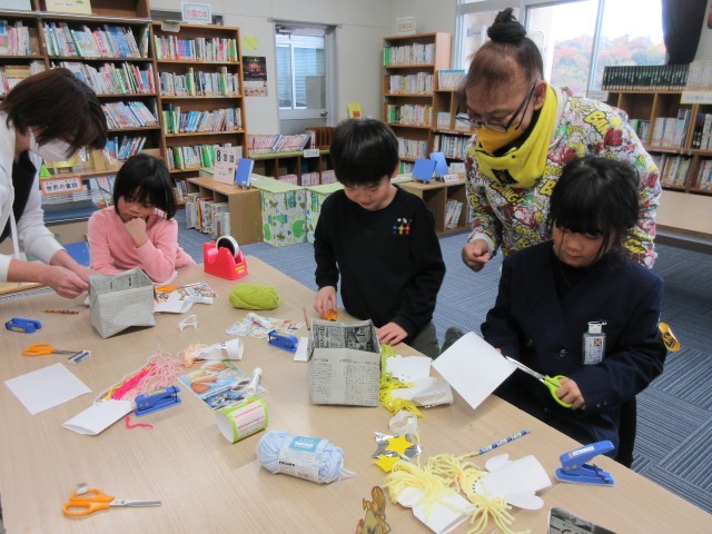 画用紙,毛糸,色紙を使って,お星の天使を作りました。