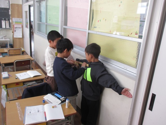 自分の身長や「尋(ひろ)」の長さを測りました。30cmのものさしでは測りづらく、...