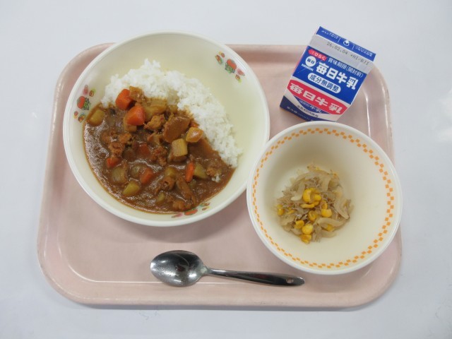 本日の献立は,ひねどりとかきのカレーライス,だいこんサラダ,牛乳でした。