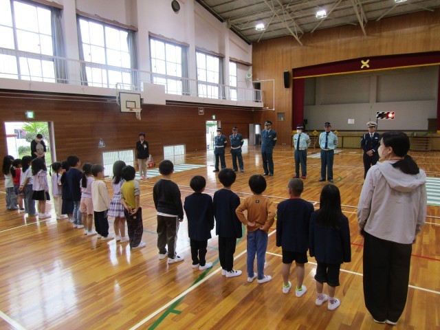 1年生の「歩行者安全教室」です。橋本警察署のおまわりさん、交通指導員さん、橋本市...