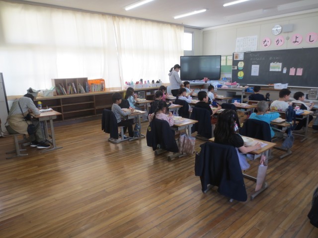 2年生国語の授業です。元気な声で音読の練習をしていました。