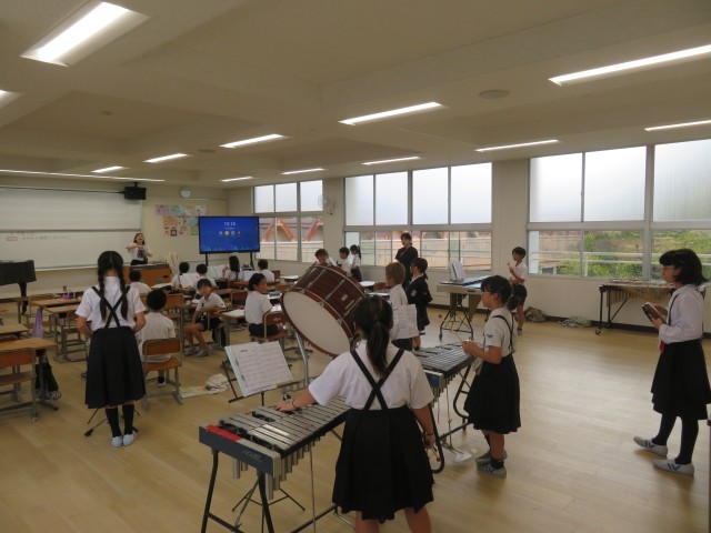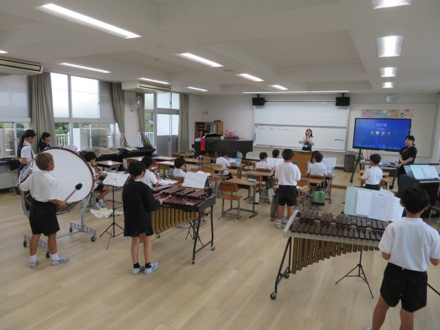 音楽の授業で合奏の練習をしています。