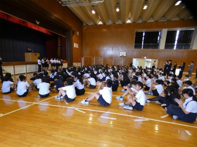 続いて、児童会役員の引継ぎ式、認証式を行いました。新旧どちらの児童会役員も、全校児童の前で自分の思いを堂々と話しました。