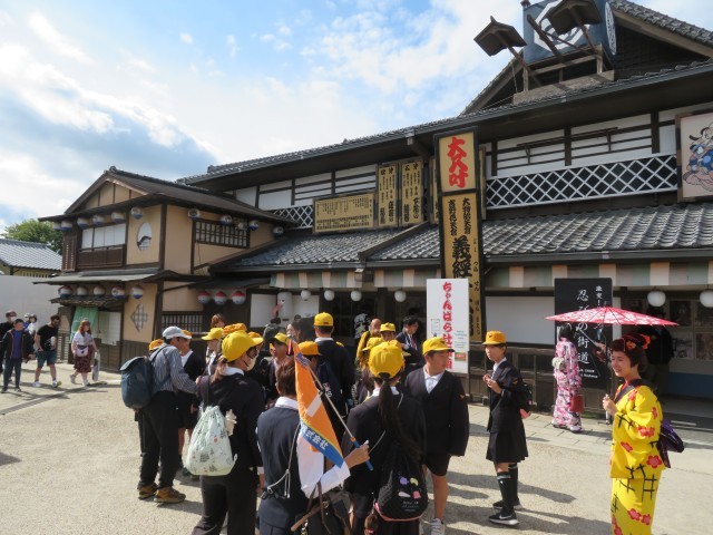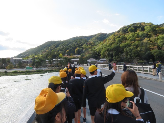 昨日の雨模様から打って変わって、朝から晴天の2日目。金閣、渡月橋、太秦映画村を訪れました。