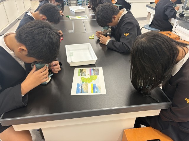 本日は、和歌山県教育センター学びの丘から講師の先生に来ていただき、「学びサイエンス」の学習をしました。ルーペや双眼実体顕微鏡で、和歌山県の海の砂などを観察しました。5倍、20倍、40倍と、どんどんとミクロの世界にのめりこむ子どもたちでした。