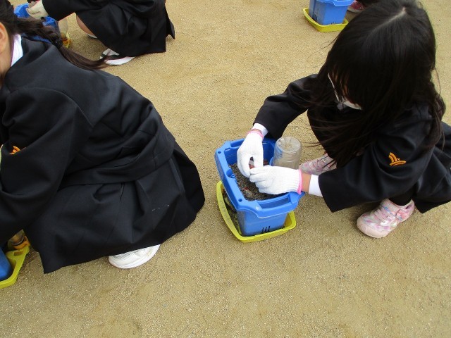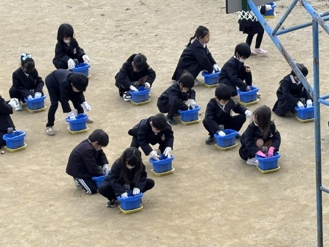 今日は、来年の1年生が入学してきた時にきれいなチューリップのお花で歓迎するために、球根を植えました。ちゃんときれいなお花が咲くように、真剣な表情で植え方を聞く1年生の子どもたち。「いつ芽がでるかな?」「何色のチューリップが咲くかな?」と、わくわくしながら、楽しく球根を植えました♪