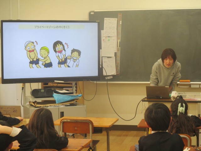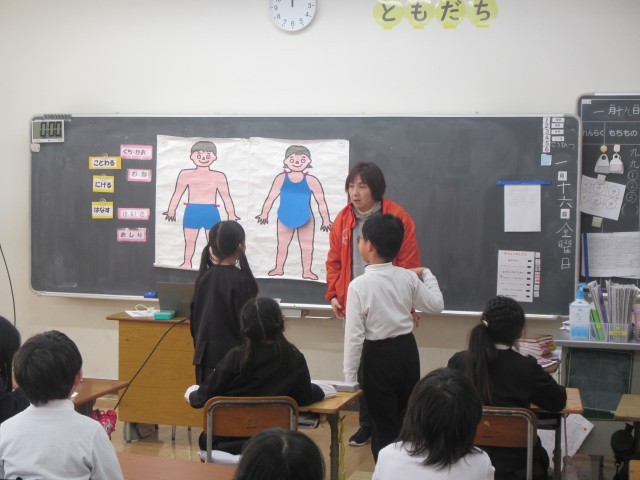1月16日(金)今日は「プライベートゾーン」について学習しました。恥ずかしいと感じる子もいるかもしれないけれど、大切なことだと話してもらい、真剣に聞いていました。男の子と女の子のからだのちがいやプライベートゾーンの6つの約束を勉強しました。プライベートゾーンのルールをやぶる人に出会った場合は「ことわる」「にげる」「はなす」ことが大事だと教えてもらいました。