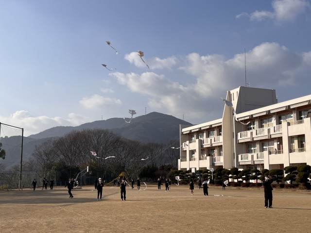 27日は、凧あげの先生に来ていただき、1から凧づくりを教えていただきました。大きい紙に自分の好きな絵を描き、骨組みをしました。凧づくりを楽しんだ後は、快晴のもと、運動場で思いっきり凧あげを楽しむことができました。教えていただき、ありがとうございました。