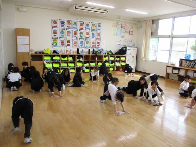 今日は、教室の大そうじをしました。教室にあるものを全部廊下に出して、教室の床の汚れをとって、雑巾できれいに磨き上げました!!